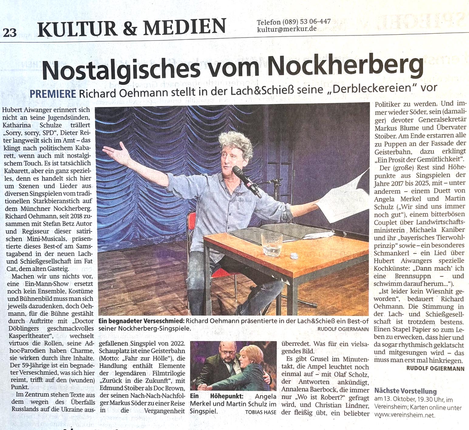 Seit 2018 Autor und Regisseur des Nockherberg-Singspiels, liest, blödelt und singt Richard Oehmann unvertonte Liedtexte, verworfene Ideen, und präsentiert sogar ein ganzes abgesagtes Singspiel.